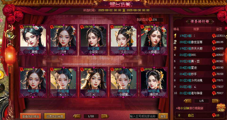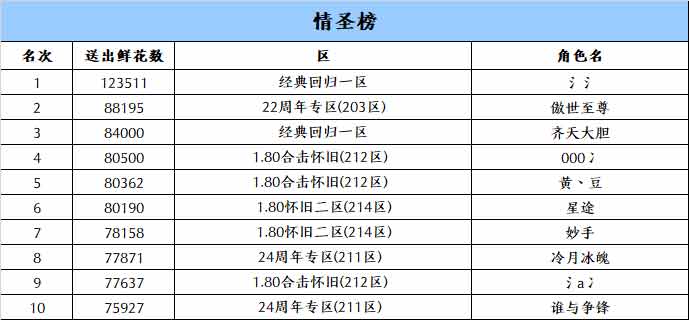 再次祝贺本期“十大女神”和“十大情圣”,愿你们在《热血传奇》继续书写属于自己的传奇故事。